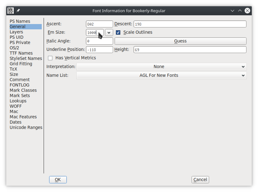 It's more complex that that in practice (there are more metrics involved), but this is what will affect relative font sizes the most. Because things are more complex, tweaking that without mangling some obscure or not so obscure parts of the font is... non-trivial. (Conventions between TTF and (Type 1) CFF vary, but I don't remember the details. Fontforge complains if you try to do something stupid. Which most TTF fonts do anyway). |