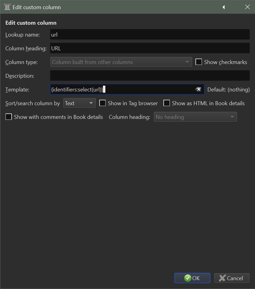 Is it possible to display the "Ids:" metadata field, that in a fanfic downloaded with Fanficfare contains the URL for a story in a column in the Calibre library screen so I can scan them for some corrupted or missing URLs instead of having to open the metadata page for every story in my library? See the attachment, I circled what I want to have as a column on the screen that has a list of stories with "Title Authors Date Size Tags Series Publisher..." So is this possible, and how would I construct the custom column? If there is a tutorial that explains how to do this that somebody who used to know AppleSoft BASIC as a kid, but only took a semester of ANSI C++ in college at the end of the '90s (aka doesn't know SQL/Oracle, JavaScript, CSS, HTML, or Python) could understand, please link. |