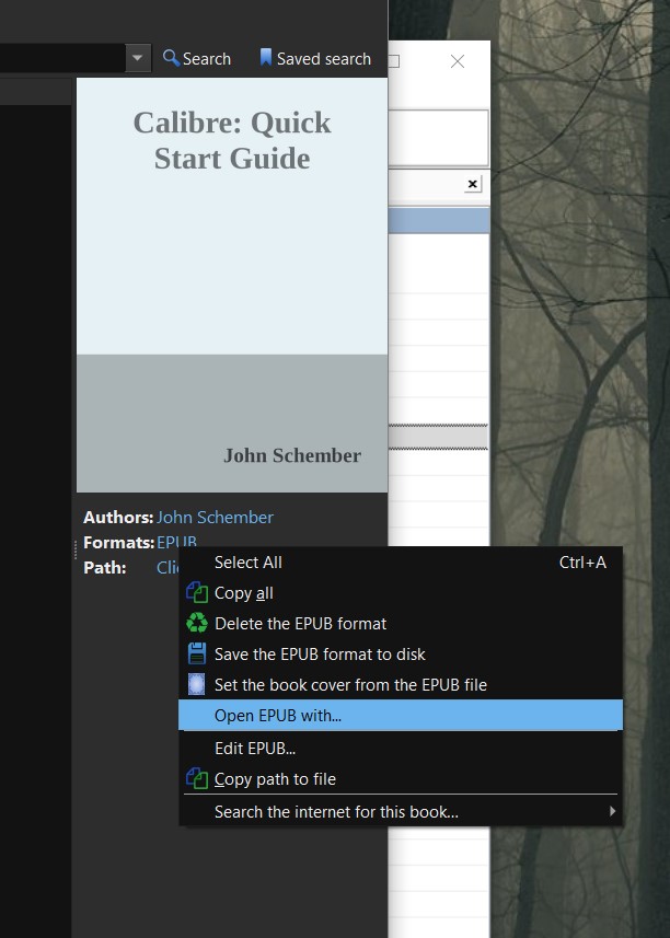 You can add a program to a file type Open With list thus: Right click on the file type, e.g. EPUB, in the Book Details panel and select Open EPUB with... Added: You can add & edit Open with programs in the Tag browser: This will present a list of previously assigned programs, Click the Browse computer for program, which will open up a file manager open file dialogue, browse to the program you want - such as Sigil That's how to configure - now how to make use of it For frequently used programs I assign a keyboard shortcut to the program: For occasional use programs I use the View specific format tool, where there's same the Open XXXX with... option This is what I have for EPUB in my Books library The blue ebook viewer is from a portable 3.48 (I changed its icon to differentiate) BR I got fed up with posting this response, in future I'll just post a link Last edited by BetterRed; 04-21-2025 at 07:38 PM. |