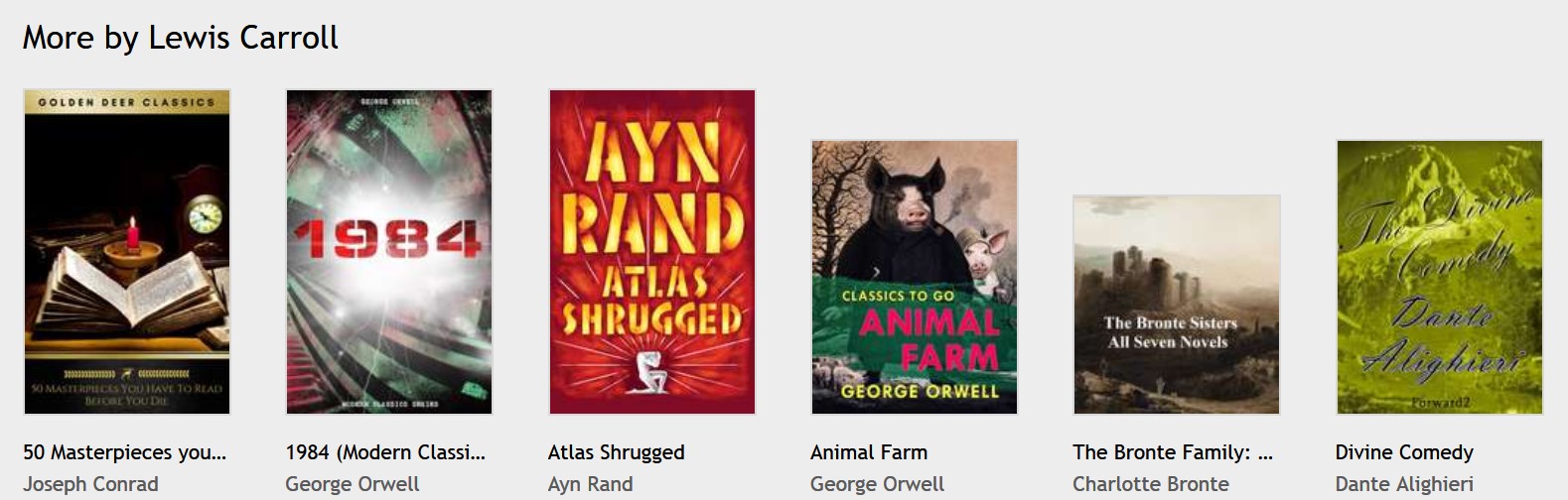 This wasn't even a search - I clicked on their "recommended free reads", offered as part of their COVID-19 deals, and one of the books on offer was Alice in Wonderland underneath it was this - Atlas was not alone in shrugging.