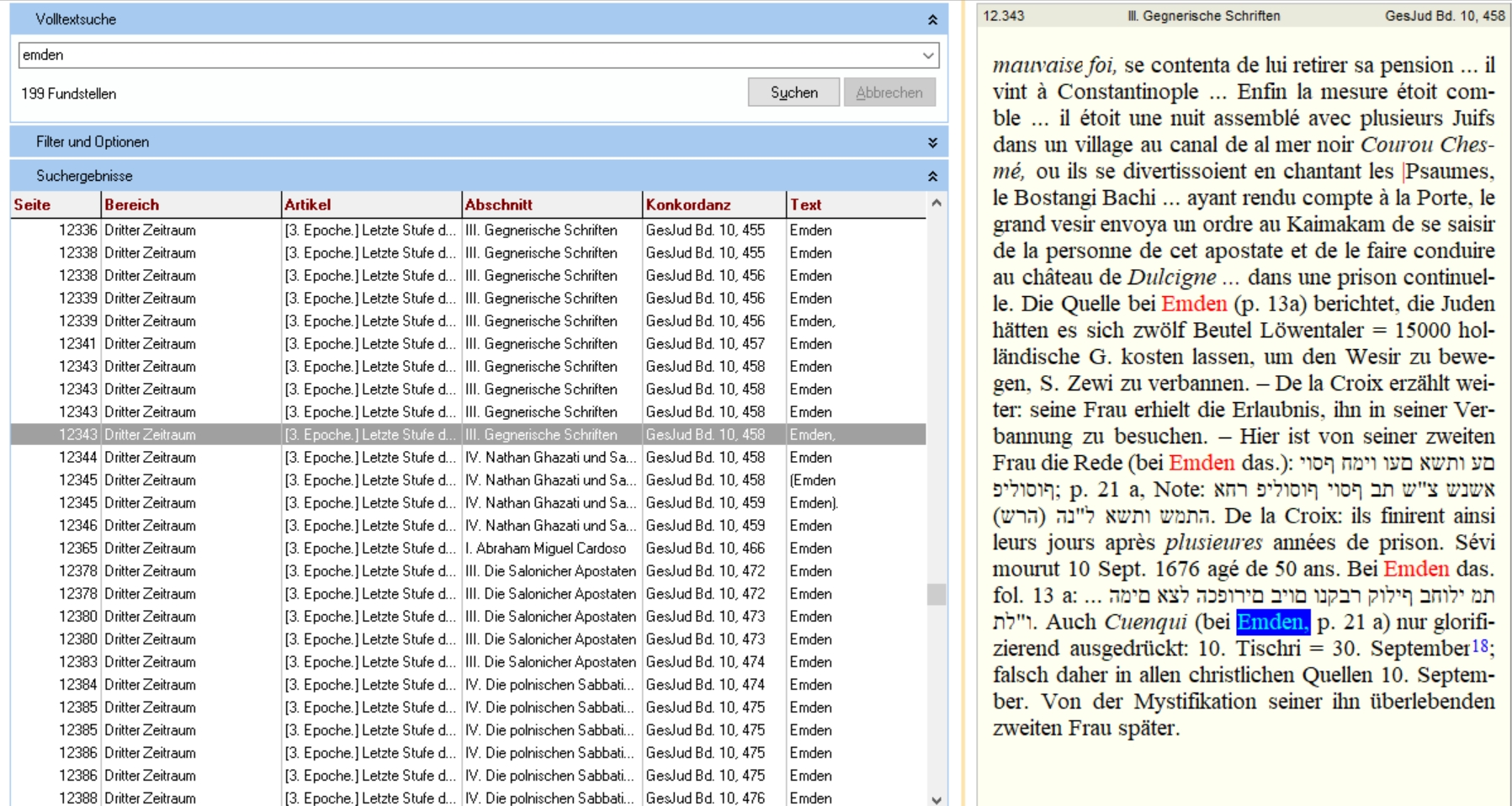 I use a an old german software from 2009 called "Digitale Bibliothek". When I search through a book it shows me the searched term in the structure of the book. I can export the file to epub with the structure. The book in the image has 14.000 pages, to have a good overview is crucial. The library has over 400 volumes of books including images, you can search through all of them in seconds. |