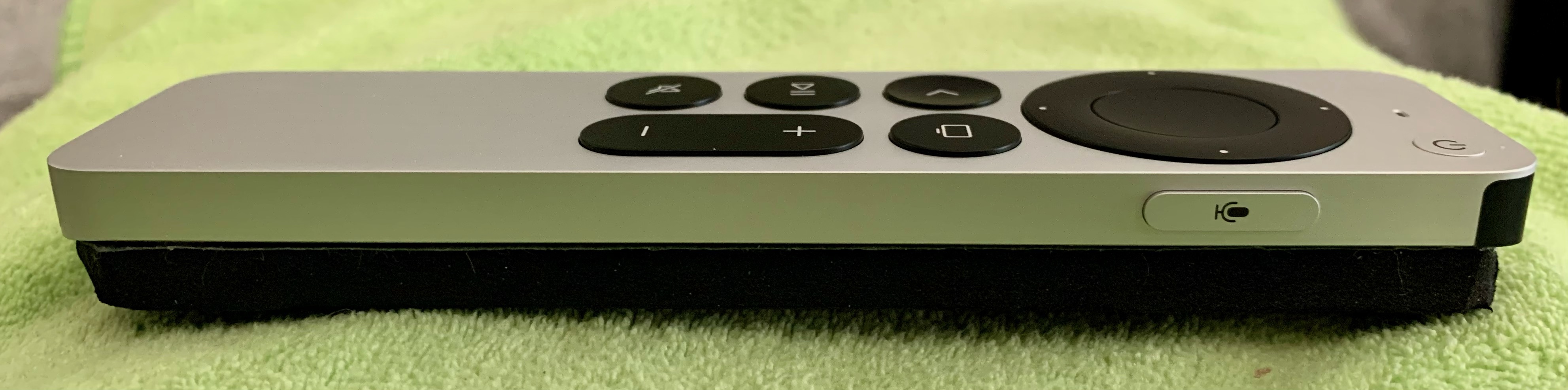 I received my ATV Siri 2nd gen Remote today. Over all I have to say it is a major improvement over the 1st gen remote! I find it is large enough to use even with my arthritic hand. It is about 3/8 inch thick and the surface area is metal but not that slippery. The 1st gen was like a sliver of a wet bar of soap and too thin. I definitely had to get a neoprene cover for the 1st gen remote, and it was still difficult to hold and use. I can use the 2nd gen remote right out of box, but it still needs a bit of help from a case to make it feel really comfortable. I have bad arthritis so need a thicker remote, but I suspect the 2nd gen remote is thick enough for most people. The 2nd gen remote has new and welcomed buttons. They added a much needed Mute button. They also added a new set of direction buttons in a circular configuration with Up, Down, Left, and Right arrows. It resembles the old iPods. You can also run your thumb around the perimeter of the circle and scroll through lists fairly quickly. There is still a trackpad but it is much smaller and is located in the center of the new circular direction buttons configuration. You can turn off the tracking feature and just use it as a selection button which you press, or you can adjust the tracking between Slow, Medium, and Fast. The trackpad actually works pretty well. Perhaps because it is smaller and less likely to be accidentally engaged, I don’t find myself accidently scrolling through things like I did on the 1st gen remote. I chose to leave trackpad feature turned On and set to Medium. I must say that the 4 direction buttons plus circular scroller plus trackpad all work extremely well and make navigation much easier and certainly more accurate than on the 1st gen remote. They moved the Mic button to the right side (edge). I’m left handed, so that makes it less likely to accidentally press it for me. Right handed people will need to watch where they put their thumb though. They changed the Menu button from the 1st gen remote to a back arrow (Back) button. Functionality is the same as the Menu button had been because it mostly just functioned as a Back button. Everything else operates the same as it did on the 1st gen remote. I will say it was worth the $59 to upgrade, especially once you consider that Apple still sells the 1st gen remote for $49. The remote took about 5 seconds to set up, literally! Just place the remote within 3 or 4 inches of your ATV then press and hold the Back button and + button until a message appears saying the remote is set up with your ATV. Really easy and quick to do. And it automatically worked with my TV without having to do anything. Just press and hold the Power button on the 2nd gen remote and the TV, soundbase, and ATV all turn On/Off. Since 90% of what I watch on TV is via my ATV, the new 2nd gen remote now becomes my primary remote. My Improvised Cover/Case Unfortunately, there are no covers/cases in stock for the 2nd gen remote. All the ones I found on Amazon had delivery dates of several weeks, which means they probably ship directly from China. I might get one once they are in stock in the US, but I don’t like having to get them all the way from China. So I improvised my own solution. See attached photos. I had a few 6” x 6” neoprene rubber/foam mats with adhesive backing. These are non-slip, so I cut a strip out of one in the size and shape of the back of the 2nd gen remote and stuck onto it. This added about 1/4 inch of thickness bringing the total thickness of the remote to just over 5/8 inch and added a non-slip surface to the back side as well as a bit of padding. I’m not sure how long the material will stay attached, but it is really well attached at the moment. This makes the 2nd gen remote very comfortable in my hand, and I can easily work all the buttons and mini trackpad. I have bad arthritis so that is why I need a bulkier non-slippery remote. My improvised solution was certainly inexpensive and easy to make and seems to work very well. Last edited by OtinG; 06-11-2021 at 04:45 PM. |