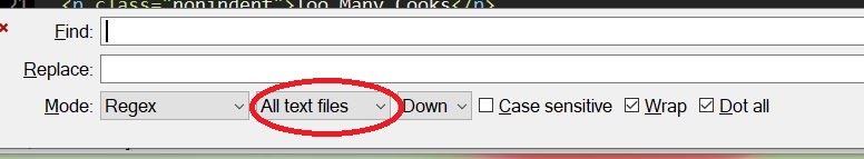 Hi is there a way to search for a phrase in edit book and replace in one stroke? Instead of going to each index_split.html individually and replacing? Thanks