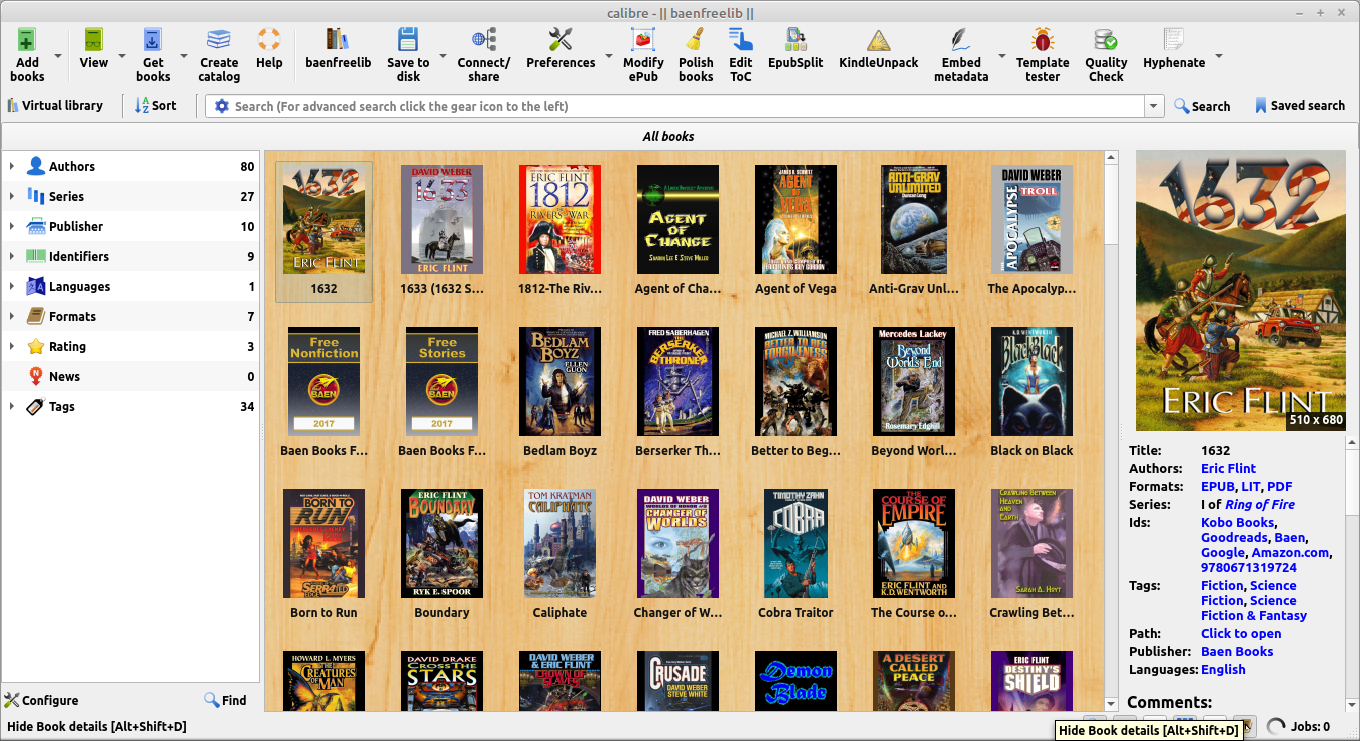 Alt+Shift+D can be used to Hide/Show the Book Details panel display. BR |