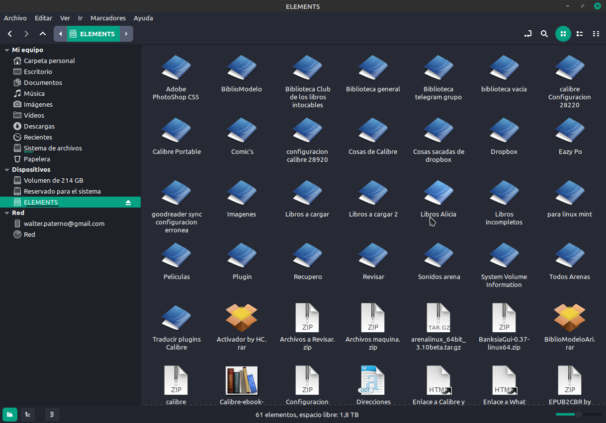Your external disk has space to spare, but apparently not your system disk. Specifically, the directory /media/walter/ELEMENTS/Libros/