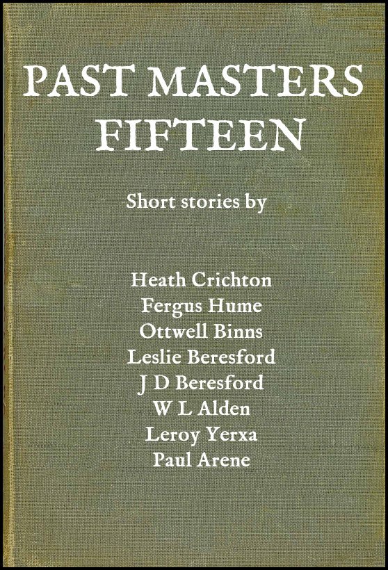 The anthology opens with an unknown author having a stab at the Raffles genre; includes several Leslie Beresford short stories, a Leroy Yerxa sf novelette, and concludes with an anonymous semi-horror tale of posession. There is a cumulative index of all stories in the Past Masters series to date. 1: The Midnight Guest / Heath Crichton 2. A Country House Surprise / Heath Crichton 3: The Gold Mummy / Heath Crichton 4: The Mystery of the Hotel Royal / Heath Crichton 5: Phantom Gold / Ottwell Binns 6: The Seaside Girl / Fergus Hume 7: The Blue Vase / Fergus Hume 8: The Fatal Trapdoor / Anonymous 9: Hopkins' Safe / W. L. Alden 10: Poker Hand / Leslie Beresford 11: Diamonds for the Duchess / Leslie Beresford 12: Light-Fingered Looting / Leslie Beresford 13: Feminine Feathers / Leslie Beresford 14: Black Cats For Luck / Leslie Beresford 15: Understudy / Leslie Beresford 16: The Man in Khaki / Leslie Beresford 17: Starkweather's Circular Hotel / W. L. Alden 18: Monty's Friend / W. L. Alden 19: The Remittance Man / Ottwell Binns 20: Cut-Throat Farm / J. D. Beresford 21: Through the Asteroids— to Hell! / Leroy Yerxa 22: Patience / Sir George B. Douglas, Bart. 23: Uncle Sambuq's Fortune / Paul Arène 24: The Walled Chamber / Anonymous Cumulative Index This work is assumed to be in the Life+70 public domain OR the copyright holder has given specific permission for distribution. Copyright laws differ throughout the world, and it may still be under copyright in some countries. Before downloading, please check your country's copyright laws. If the book is under copyright in your country, do not download or redistribute this work.