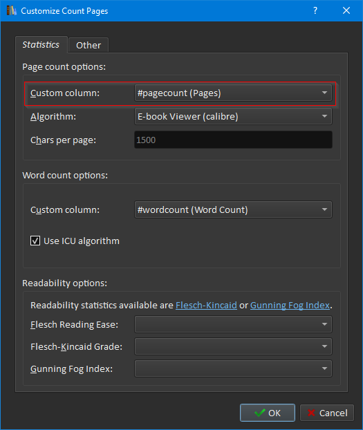1. To set up a page count column, first right-click on the column headers and go to "Add your own columns." Then add an integer column. I call mine #pagecount. Restart Calibre.