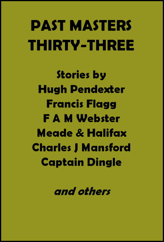 1: The Raven Mocker / Hugh Pendexter 2: Intermere / William Alexander Taylor 3: Sinners' Paradise / Raoul Whitfield 4: The Detective for the Defense / C. Langton Clarke 5: A Ledge of Safety / Wolcott LeClear Beard 6: Towards Morning / F A M Webster 7: The Blue Dimension / Francis Flagg 8: The Heads of Apex / Francis Flagg 9: Kingbird / Hugh Pendexter 10: Homeward Bound / Captain Dingle 11: Deferred / Captain Dingle 12: The Small House on Steven's Heath / Meade & Halifax 13: The Great Dial of the Gold-Finders / Charles J. Mansford Cumulative Index to Nos 31-33 This work is assumed to be in the Life+70 public domain OR the copyright holder has given specific permission for distribution. Copyright laws differ throughout the world, and it may still be under copyright in some countries. Before downloading, please check your country's copyright laws. If the book is under copyright in your country, do not download or redistribute this work.