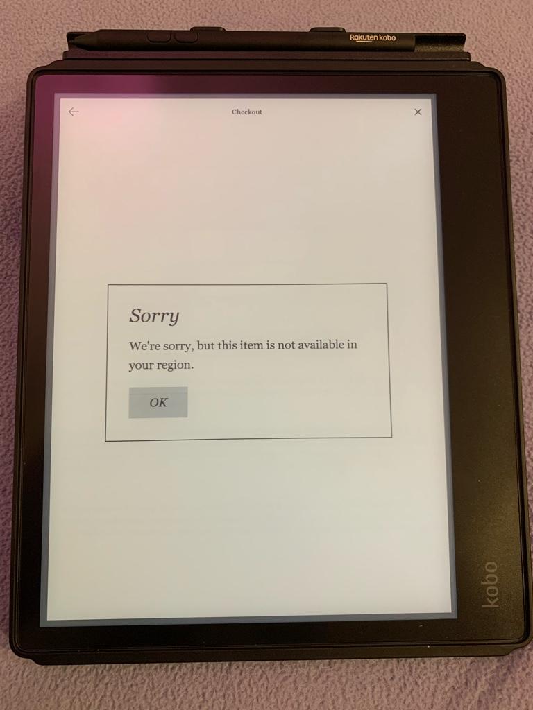 So I decided to test the kobo store and purchased a new book. The book never arrived. I checked my account on kobo.com and sure enough, there was the purchase. And visiting the book’s page on kobo.com showed that I already owned the book. However, the book still didn’t show up on the Elipsa. It also didn’t show up on my iPad and iPhone running Kobo’s app. Nor did it show up on my Kobo Clara HD. I’ve even repaired my account a few times. No luck. I’ve purchased ebooks on the Kobo store for years, and never run into this problem. Visiting the store again on my Elipsa and trying to repurchase the book gives me a “We are sorry but this item is not available in your region” message, which is incorrect since they already charged me for it. I mentioned this in another thread, but thought it should have its own just in case somebody else was running into the same problem. I’m running the very latest firmware (4.28.17826) Anybody else running into this glitch? I haven’t reached out to kobo yet just in case somebody online already had a solution, but I’ll probably reach out to them soon. Sent from my iPhone using Tapatalk Pro Last edited by Cootey; 08-18-2021 at 03:02 AM. Reason: Oversize image attached as thumbnail. Please read the guidelines. |