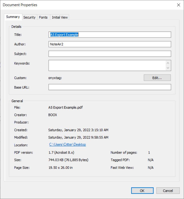 Hi, I just got a Note Air 2 and really love the device! I'm happily taking notes with the built in templates and some custom ones too. The PDF I'm using as a template is A5 in size, but when I export the document is HUGE. Instead of 5 inches by 8 inches, it's 20 inches by 30 inches. As an experiment, I open the exported PDF in Photoshop and can resize it but that is obviously not a solution as it would slow down my work flow. I noticed the same problem happening with other folks on the Boox Community forum, but there are only 13 members and no solutions coming from that source.