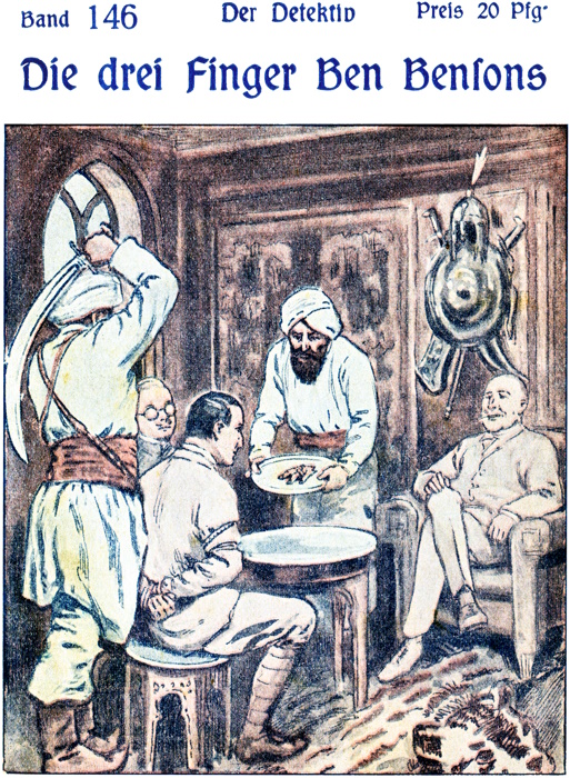 Wir kamen von Edinbourgh, waren nur zu dreien in einem geräumigen Abteil erster Klasse … In Hull stieg ein weiterer Reisender ein. — Was mir sofort auffiel: der Mann trug trotz des heißen Junitages Rehlederhandschuhe … Nachmittags sechs Uhr waren wir in London, Waterloo-Bahnhof. Wir nahmen unsere Reisetaschen und Mäntel und verließen den Zug. Der Gutsbesitzer blieb sitzen — der mit den Rehlederhandschuhen, die er die ganze Zeit über anbehalten hatte. Kaum hatten wir den Bahnsteig betreten, als Harald mir zuraunte: »Wir fahren weiter … Folge mir …« Das war wie ein Alarmsignal … Harald ging bis zum vordersten Wagen … Blieb hier am Gangfenster innen stehen … Flüsterte wieder: »Vielleicht steigt er doch noch aus … Der Bart und das Haar waren falsch … Und drei Finger fehlten ihm — an der rechten Hand … Er hatte nur noch Daumen und kleinen Finger … Die Handschuhfinger waren ausgestopft.« Ben Bensons große Liebe … Die »Geschwister« waren außerordentlich erregt, wenn sie dies auch recht gut zu verbergen wußten … Sie trauten dem Frieden nicht, und die Blicke, mit denen sie uns beide musterten, sagten mehr als Worte … Benson-Patterson-Robertson meinte dann ärgerlich: »Spielen Sie doch nicht mit uns Katz’ und Maus …! Die Sache mit dem Inder ist Schwindel …! Sie beide sind Detektive, und wir sind Ihnen nur gefolgt, weil ja doch alles verloren ist …« Harald holte aus der Tasche einen Brief und vier unaufgezogene Momentaufnahmen hervor … »Bitte — lesen Sie …! Sehen Sie sich die Bilder nur an …!« Und er erklärte, was wir beobachtet hatten: Schama Semlis heimliche Aufnahmen — all das übrige! This work is assumed to be in the Life+70 public domain OR the copyright holder has given specific permission for distribution. Copyright laws differ throughout the world, and it may still be under copyright in some countries. Before downloading, please check your country's copyright laws. If the book is under copyright in your country, do not download or redistribute this work.