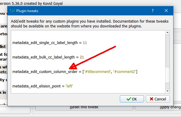The tweak value is still there. Look for "metadata_edit_custom_column_order" in the plugin tweaks section. |