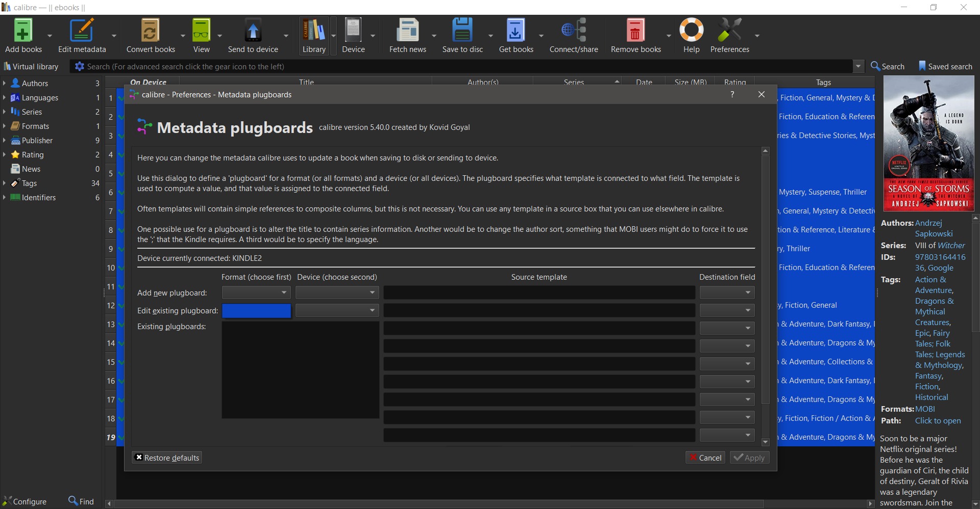 I'm having real trouble getting my Series number metadata to show up in the title when using the Plugboard. I'm on Windows 10 using a Kindel2, I go to the Plugboards and set it as mobi and KINDLE2 with the string: Code:
