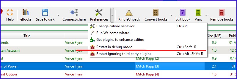 I wish to enter Calibre in Debug mode, not via terminal, but inside Calibre.