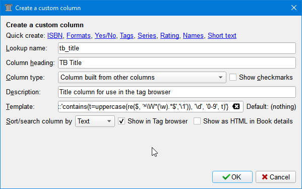 program: ts = re($title_sort, '\.', ':'); contains(t=uppercase(re(ts, '^\W*(\w).*$','\1')), '\d', '0-9', t) & '.' & ts EDIT: The initial re() is there to change periods to colons so they won't confuse the hierarchy. EDIT 2: If you use standard first letter grouping then you don't need to change the periods or make the column hierarchical. Last edited by chaley; 11-12-2022 at 11:34 AM. |