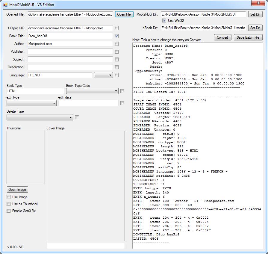 - On my Kindle Wi-Fi 3.1 I have loaded several dictionaries and books in different languages. - My default dictionary is the builtin English American dictionary. - When I read books in french or english, the expected dictionary is automaticaly invoked. Good. - When I read books in spanish or german (though I don't realy speak these languages I wanted to test further) only the default english dictionary is invoked. Bad. I used Mobihandler and Mobi2Mobi to document the language metadata of the books and dictionaries. I think they indeed match: FRENCH: Dic: SPANISH: Dic: GERMAN: Dic: ENGLISH: Dic: Could that be the definition dictionaries are switched to automatically but not the translation ones? Or additional metadata that I am missing? Or... a bug in the Kindle software?