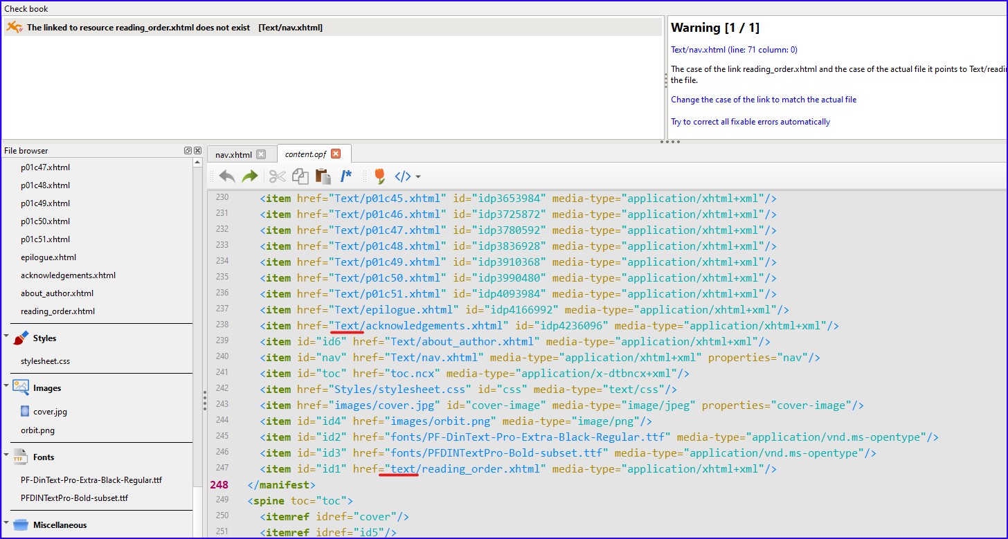 When I manually change it to capital T, the error persists. Why is Calibre pasting a file into the epub with the wrong case in the folder name? |