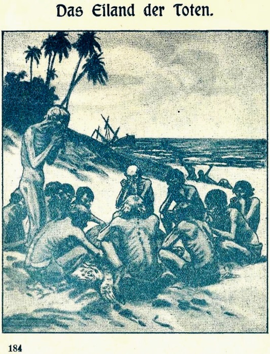 Über und über flimmerte das ausgestirnte Firmament in all seiner stillen, erhabenen Pracht … Um uns her war das Schweigen der Wüste … Nur aus weiter Ferne drangen zuweilen heisere, kläffende Töne, vom sanften Nachtwind bis zu unserem Lagerplatz geleitet, wie häßliche Geisterstimmen herüber … Von dorther, wo Harald nachmittags am Rande des ausgetrockneten Flußbettes den stämmigen Samba-Hirsch mit sicherer Büchsenkugel niedergestreckt hatte, dessen eine Keule nun kunstgerecht am Spieß über dem Feuer schmorte, häufig gedreht von Doktor Amalgis kundiger Hand … Wir lagen auf unseren Decken um das knisternde Feuer herum … Wir waren vorgestern abend zu fünfen von der Stadt Amber am Südostrande der indischen Thar-Wüste hoch zu Dromedar und mit zwei Lastkamelen aufgebrochen, um in kürzester Zeit den Großen Salzsee zu erreichen, in dessen Mitte sich einige kahle, felsige, zerklüftete Inselchen erheben, von denen die eine das Geheimnis barg, dessenwegen Miß Honoria Goord zwölf Jahre im Kerker geschmachtet hatte, wie ich bereits im vorigen Bande angedeutet habe. Auf dem See des Schweigens. Es war längst heller Tag geworden … Aber hier in dieser engen Schlucht — mehr Felsspalte als Schlucht — herrschte trotzdem ein unsicheres Halbdunkel, da beide Schluchtränder mit jenen merkwürdigen, zumeist nur in den gebirgigen Gegenden der Thar vorkommenden Randosio-Büschen dicht bestanden waren, deren Luftwurzeln gleichfalls große Seitenäste mit fahlem Blattschmuck besitzen. Und diese Wurzeln hatten sich allmählich von beiden Seiten her vereinigt und so die Schlucht gleichsam mit einem Dache überspannt, das den Sonnenstrahlen jeden Zutritt verwehrte … Wir hockten also in einer winzigen Lichtung des Dornengestrüpps eng nebeneinander. Seit mehr als einer Stunde hatten wir von den Verfolgern nichts mehr bemerkt. Harald erklärte jetzt nochmals, daß er durchaus nicht etwa fürchte, die Hunde der Afghanen könnten vielleicht unsere Fährte wiederfinden … Text und Cover stammen von der Walther-Kabel-Seite, vielen Dank nach dort. This work is assumed to be in the Life+70 public domain OR the copyright holder has given specific permission for distribution. Copyright laws differ throughout the world, and it may still be under copyright in some countries. Before downloading, please check your country's copyright laws. If the book is under copyright in your country, do not download or redistribute this work.
