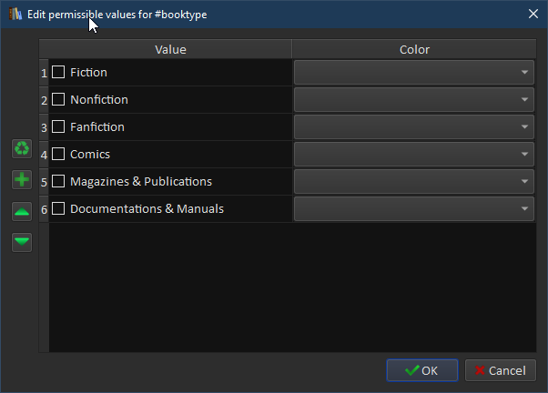 With only the Quickstart guide in my library, I manually populated the #cgenre column for the Quickstart guide with "Ref" . After applying that, I tried to populate the #genre column with NF.{#cgenre} . However that doesn't pick up the value from #cgenre; the #genre column for the book just has literally "NF.{#cgenre}" This probably illustrates that I don't understand much. I used two columns with the thought that I could populate the new Genre column with the pre-existing values in #cgenre column and a prefix to indicate a higher level such as non fiction. |