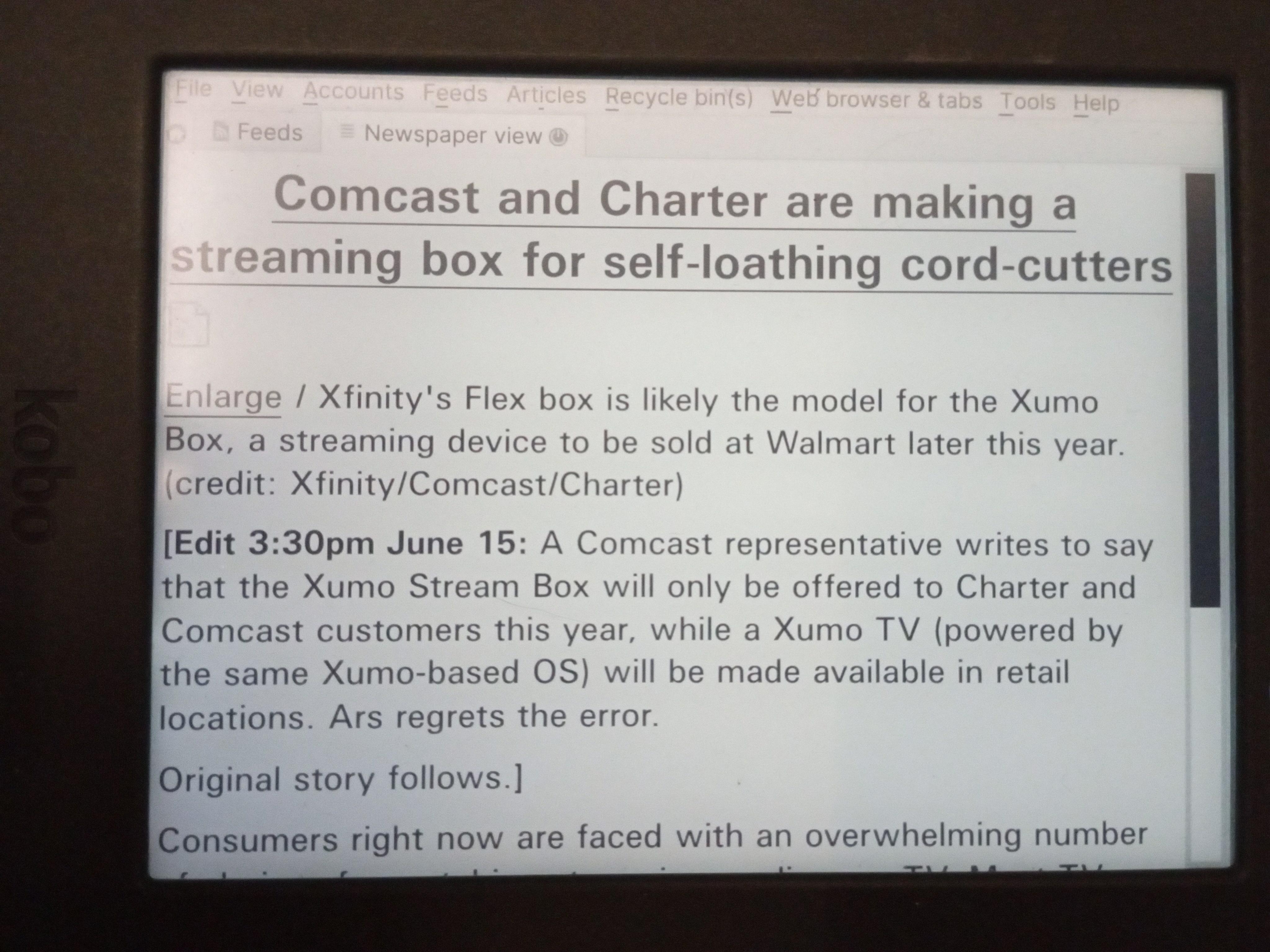 I ported RSS guard to InkBox, here is the repo: https://github.com/Szybet/rssguard-inkbox Can be downloaded from here: https://github.com/Kobo-InkBox/user-applications It's not as polished as Sanki, but perfectly usable. I hope you enjoy it. I attached some photos too. |