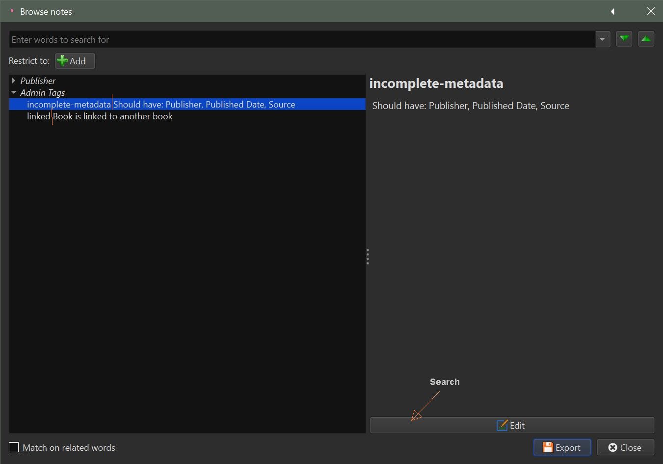You probably know this, but you can get partway there by using the category editor and choosing the "currently selected books" option. That will show you the items for the book along with whether or not they have notes/links. You could get closer by adding a column icon that says whether any item has a note or a link, letting you know that there is more information in the category editor. I am considering adding icons to the tag browser item lines indicating whether that item has notes or links. Probably wouldn't help you as (I think) you don't use the tag browser much. |