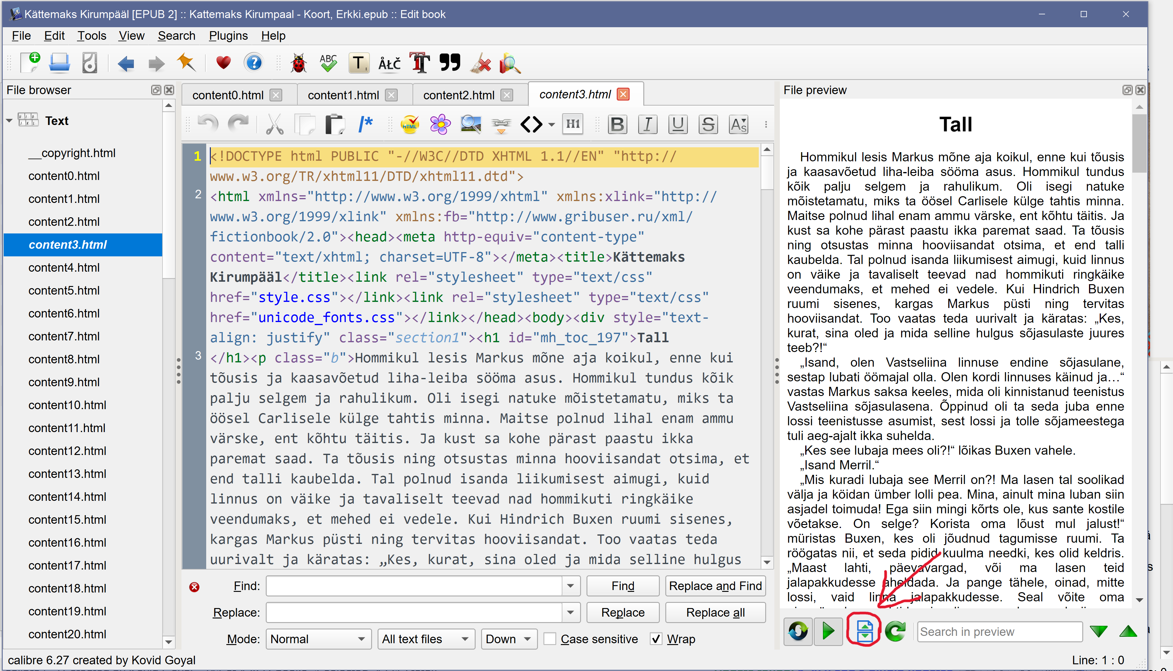 Sirtel, when I open the Calibre book editor, it does not look at all like the image you used. Are you suing another program? I don't see that icon for inserting the file split.