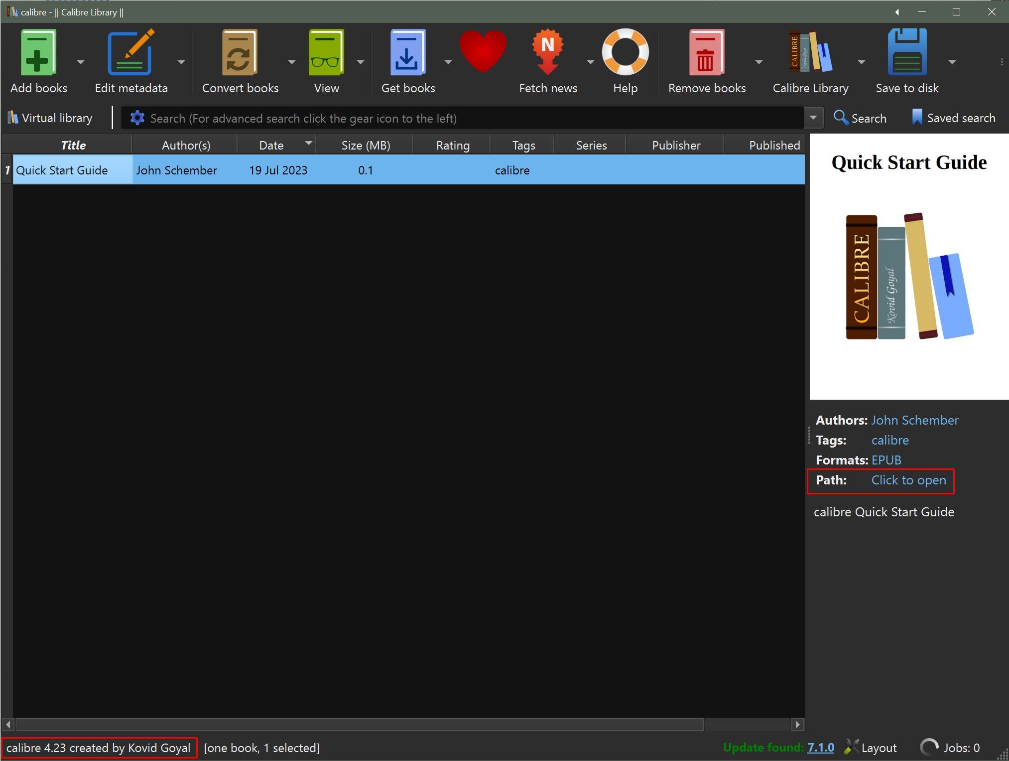 Are you sure you're not misremembering, and that what you clicked on before was the EPUB in the Formats: field, just above the Path: Click to open. BR |