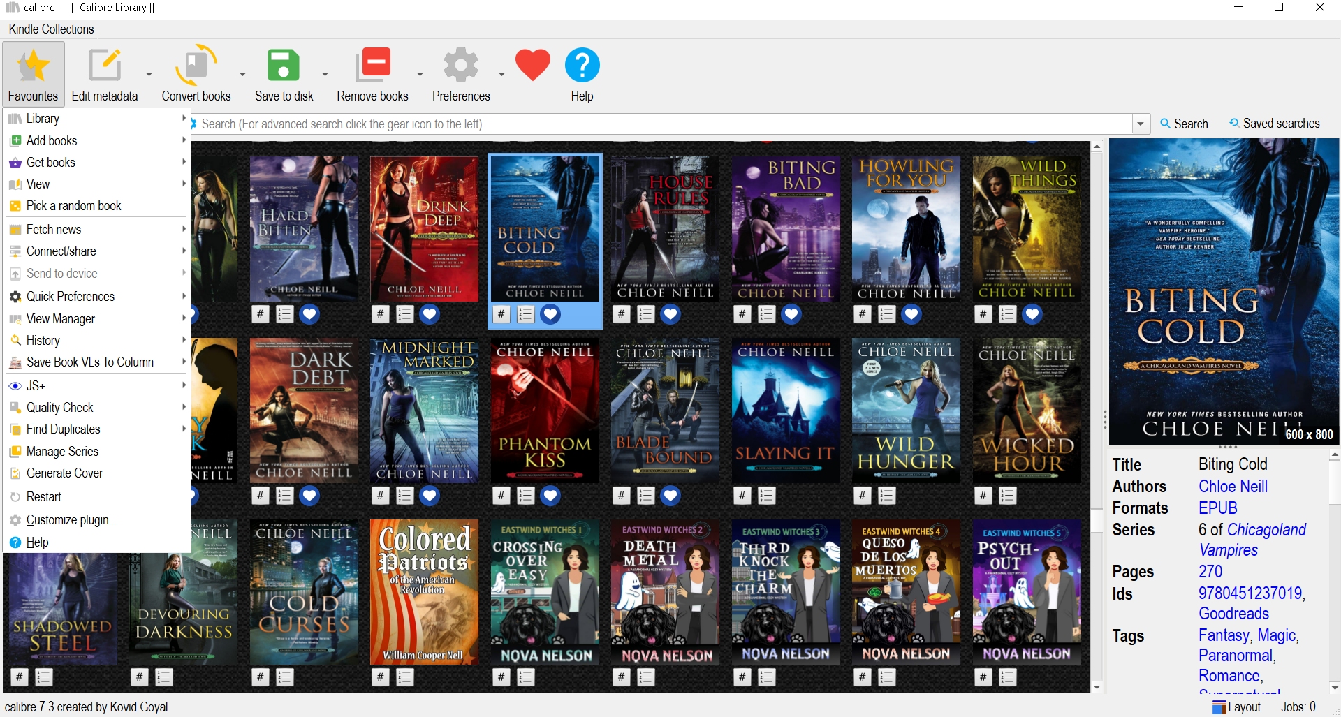 1. The first image shows the plugins/menu items I have attached to the right click (or "Context Menu") on a book menu. These items usually apply to single books. You can configure this via Preferences - Toolbars & Menus. 2. The second image shows the menu I configured via the Favourites plugin. Most items here most often apply to libraries or multiple books. There are countless ways to arrange your menus. To keep my main menu decluttered, I chose to arrange items as shown in the two menus attached. Last edited by DoctorOhh; 01-07-2024 at 06:22 PM. |