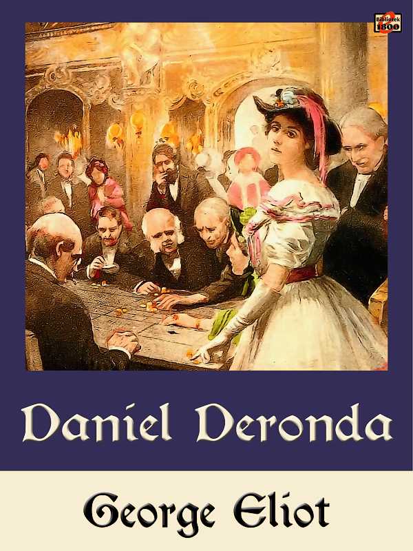 Hun var stærkt begavet og studerede blandt andet litteratur, teologi og filosofi, lærte sig tysk, italiensk, græsk og latin og oversatte adskillige filosofiske og teologiske værker. Om bogen Daniel Deronda er adopteret af en engelsk adelsmand. Han er som en del af familien, og nærer mistanke om, at adoptivfaderen måske er hans virkelige fader, men kender egentlig ikke sine virkelige forældre. Han er en filosofisk og velmenende ung mand, som har let ved at fatte mediidenhed med medmennesker, han føler er i nød – ikke mindst følelsesmæssigt. Således redder han en ung jødisk pige, Mirah Lapidoth, fra at drukne sig i Themsen og indkvarterer hende hos nogle bekendte, hvor hun snart blomstrer op i et nyt liv. Det viser sig at hun er flygtet fra en fader, som efter i årevis at have udnyttet hendes beskedne sangtalent på billige teatre i Wien og Budapest vil sælge hende som hustru til en ungarsk libertiner, og hun søger nu efter sin forsvundne moder og broder i London. Mødet med Mirah og senere hendes broder skal vise sig at blive Derondas skæbne. Ligesom flere andre af Eliots romaner har også Daniel Deronda flere hovedpersoner og flere historielinjer, som slynger sig ind i hinanden. Den anden af romanens hovedpersoner – som på mange måder fylder mere end titelpersonen – er den forkælede og til tider temmelig tankeløse Gwendolen Harleth, som kan vælge mellem mændene i sine omgivelser efter forgodtbefindende, men ender med at gifte sig med den psykopatiske og besiddende Henleigh Grandcourt, Derondas fætter, som ganske vist har fire børn og en tidligere elskerinde hængende i baggrunden, men som kan forsørge Gwendolens moder og søskende, så de undgår en fallit. I sin søgen efter en vej i livet har Gwendolen knyttet sig til Deronda som en slags åndelig vejleder, men Grandcourts – i øvrigt ganske uberettigede – jalousi sætter en stopper for deres forhold. Daniel Deronda er Eliots sidste roman, og en af hendes mest kontroversielle, både på grund af skildringen af Gwendolens ægteskabelige underkuelse, og fordi den for nok første gang i engelsk litteratur gav en positiv og ukarikeret fremstilling af jøderne og jødedommen. Nærværende danske oversættelse – så vidt vides den eneste eksisterende, og aldrig udgivet i bogform – er en smule forkortet. This work is assumed to be in the Life+70 public domain OR the copyright holder has given specific permission for distribution. Copyright laws differ throughout the world, and it may still be under copyright in some countries. Before downloading, please check your country's copyright laws. If the book is under copyright in your country, do not download or redistribute this work.