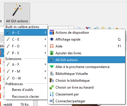 I added a new action, All GUI actions, that displays a menu of all the built-in and plugin actions. This image shows it.