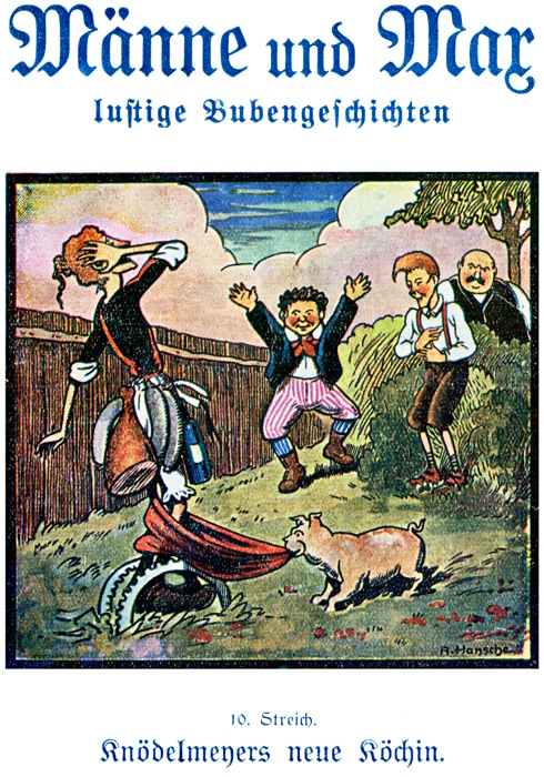 Seht, das ist Amanda Leyer, Köchin bei Frau Knödelmayer. Eine Köchin ist meist dick, Weil sie nie das schlechtste Stück Von dem Braten sich erwählt Und ihr auch nicht Butter fehlt. Die Amanda Leyer doch Geht durch jedes Nadelloch. Dünn wie ’n Faden ist sie nämlich, Dabei von Charakter grämlich. Denn nur Dicke sind gemütlich, Und die Magern wenig friedlich. Schon die Nase lang und spitz Und des Mundes breiter Schlitz, Dessen Winkel abwärts neigen, Deutlich die Gemütsart zeigen. Text und Cover stammen von der Walther-Kabel-Seite, vielen Dank nach dort! This work is assumed to be in the Life+70 public domain OR the copyright holder has given specific permission for distribution. Copyright laws differ throughout the world, and it may still be under copyright in some countries. Before downloading, please check your country's copyright laws. If the book is under copyright in your country, do not download or redistribute this work.