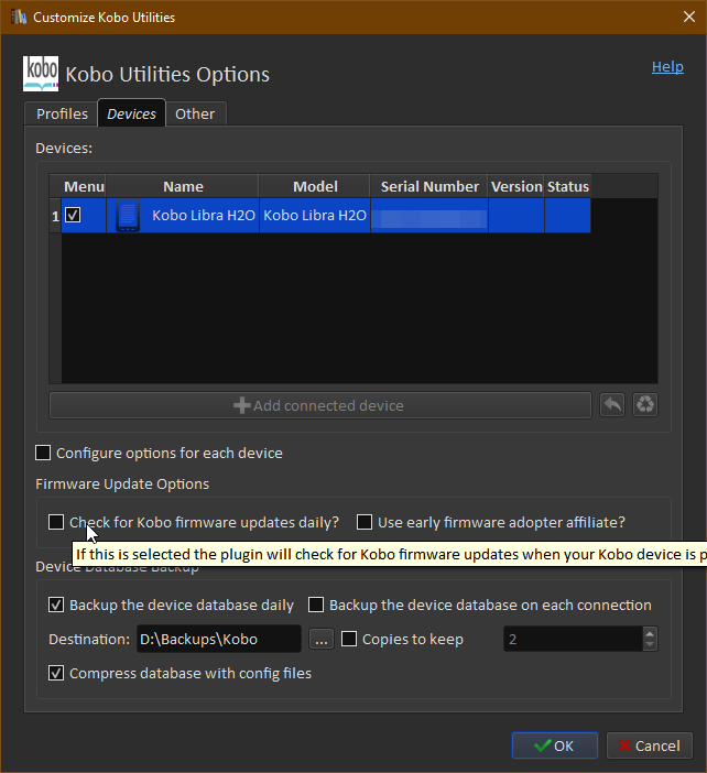 Forget using Kobo Utilities to check for new firmware. It won't work. Kobo is using Cloudflare to block unauthorized connections. And unless Kobo Utilities is upgraded like Kobo Metadata was, it will fail.