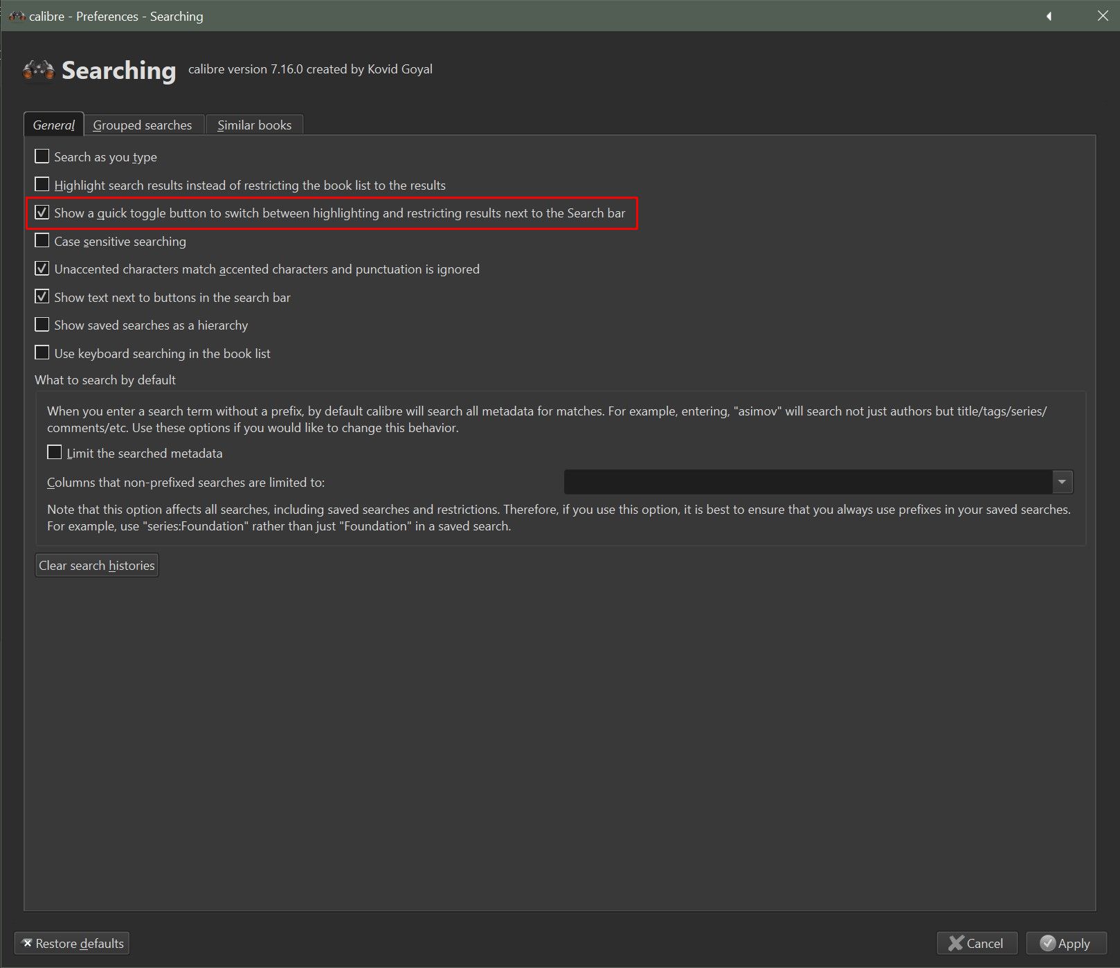 You can also limit the searched metadata only to title/author/series in the settings.