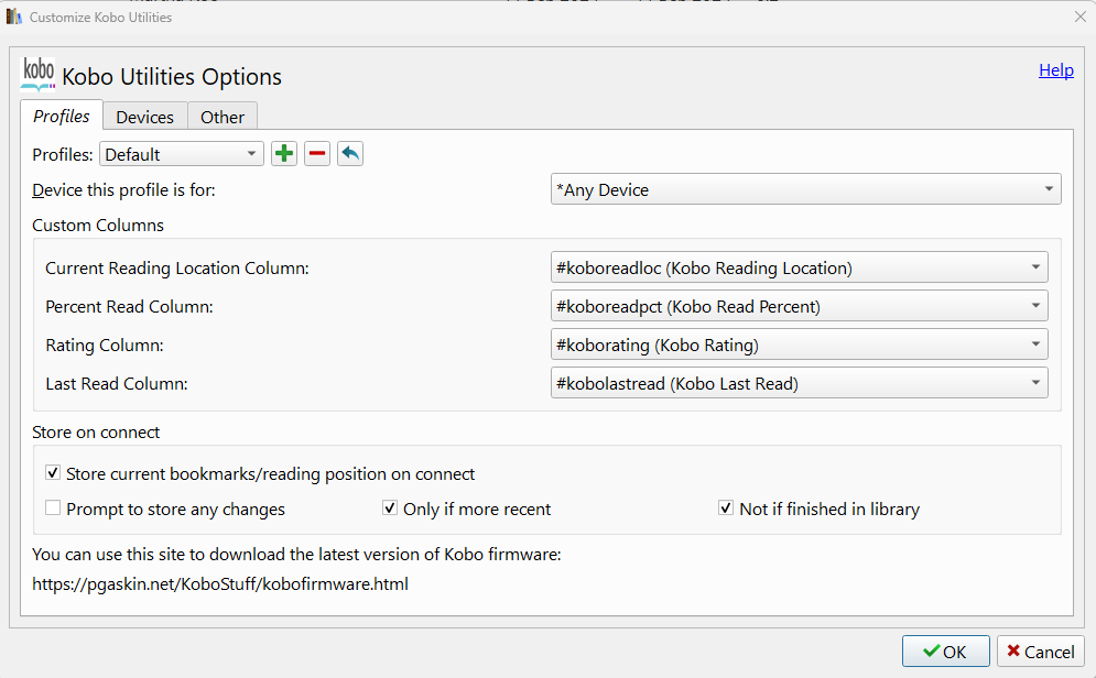 As for the bookmark restore, did you configure the needed custom columns and Kobo Utilities is configured to use them so you have some data to restore? See 1st attached image. the 4th image is what the columns look like in my calibre library view. Last edited by DNSB; 09-12-2024 at 06:43 AM. Reason: Edit: added 4th image |