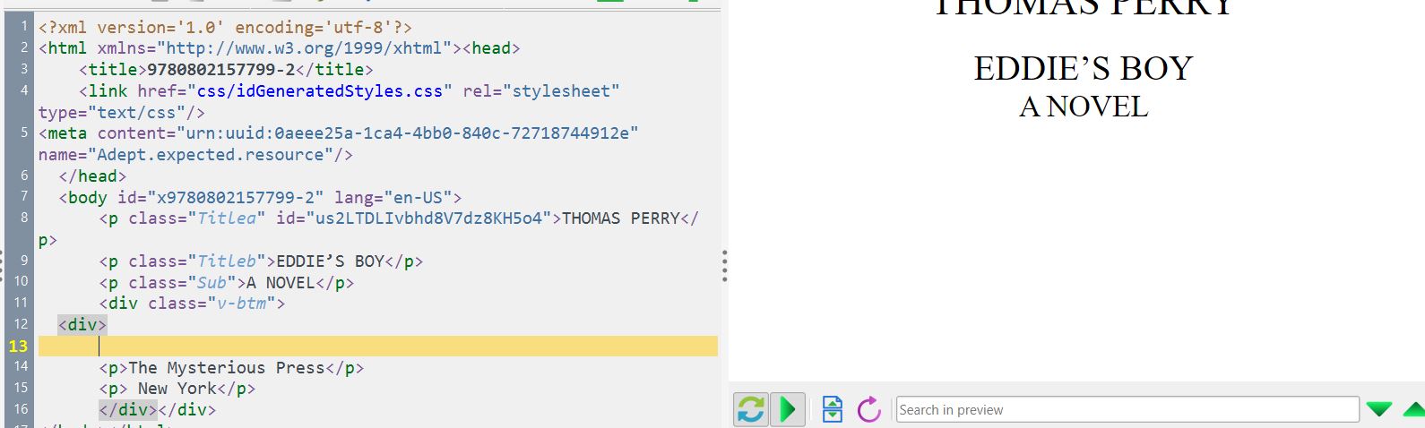 Your css above didn't have the definitions for classes: Titlea and Titleb...but I think I found the problem. I noticed I hadn't included the author name on my example so I added that... (see attached) it also shows that you can have stuff aligned at the top, middle, and bottom all on the same page. While making this example I remembered the discussion that we had on the other threads in MR about vertical centering that the rendering engine could calculate display space out of order... eg, it can report to the ePub that there are 1600 pixels available for viewing height (vh) but then reserve some of that space for headers/footers/inspector widgets/etc. If the ePub calculates the formatting based on the 1600 pixels then the bottom of the display can be covered with the widget/footer. On this example I changed the vh to 95 (95% of viewable height) to account for any lost space due to the renderer mis-reporting. This will leave a little bit of space at the bottom, but should look fine. Code: