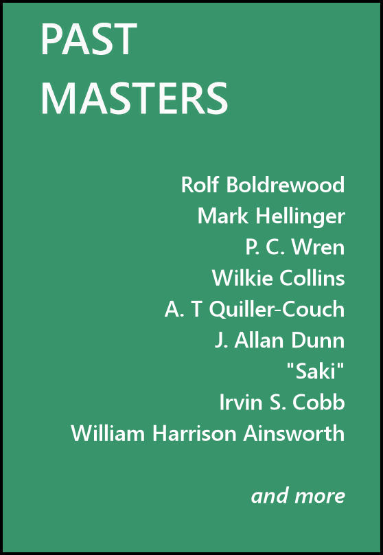 1: Caulfield's Crime / A. Perrin 2: The Gold Wolf / W.A. Fraser 3: The Spectre Bride / William Harrison Ainsworth 4: The Kidnapped "General" / Stacy Aumonier 5: Angels Unawares / Rolf Boldrewood 6: The Prisoner of Assiout / Grant Allen 7: On the Plains / Ernest Favenc 8: St. George and the Dragon / Robert Grant 9: The MacSnorrt / P. C. Wren 10: The Golden Grasshopper / William Le Queux 11: A Terribly Strange Bed / Wilkie Collins 12: The Rival Ghosts / Brander Matthews 13: The Case of the "Flitterbat Lancers" / Arthur Morrison 14: The Ferret and the Bet / J. Allan Dunn 15: The Phantom Luncheon / "Saki" 16: The Body in the Garage / Mark Hellinger 17: Le Diable / Huan Mee 18: My Christmas Burglary / A. T. Quiller-Couch 19: Masterpiece / Irvin S. Cobb This work is assumed to be in the Life+70 public domain OR the copyright holder has given specific permission for distribution. Copyright laws differ throughout the world, and it may still be under copyright in some countries. Before downloading, please check your country's copyright laws. If the book is under copyright in your country, do not download or redistribute this work.