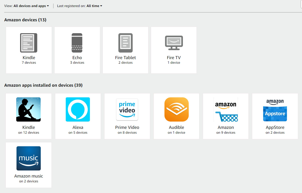 I see the same thing as jhowell. The "Amazon Devices" section is exactly that: Registered Amazon Devices only. The "Amazon Apps installed on devices" section (immediately below "Amazon Devices") is how you find what Amazon Apps are installed on which non-Amazon devices. You chopped the relevant section off in your screencap. Last edited by DiapDealer; 10-23-2024 at 11:33 AM. |
