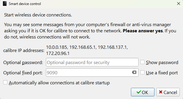 I have turned on connect share and can connect to the server using my phone. But when I try and connect using Kor reader using the same ip and port nothing happens and the Kindle does not show as a device to send books too. I have tried using Server address Auto and manual. I have added the opds catalogue with same ip address and port that is working on my phone. Both devices are connected to same wifi etc I can search calibre Meta data and see books etc ??? But cant access the books via the server. Can anyone explain what im doing wrong? Im very confused! |