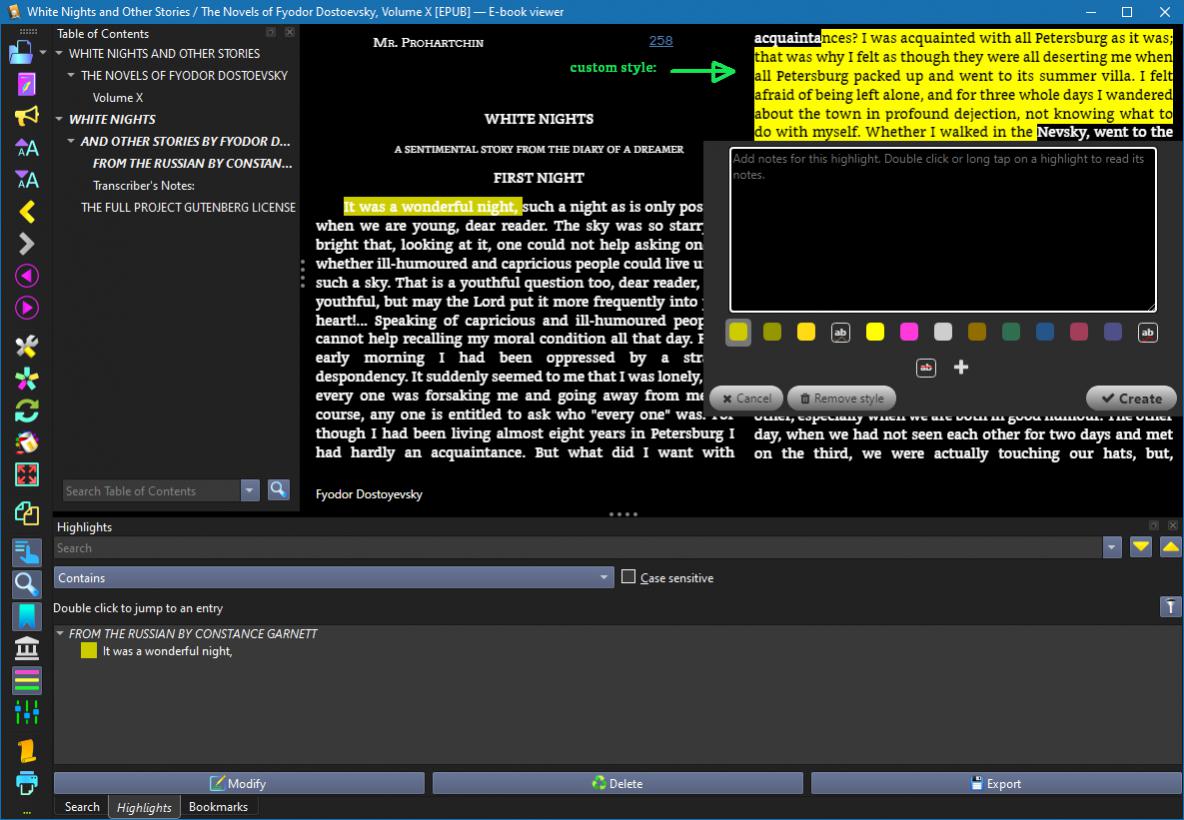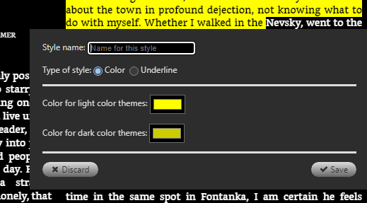 Sometimes I set the Viewer color scheme to Black and I wanted to change the text color of the highlights, however the Style creation tool allows only customisation of the highlight background color.