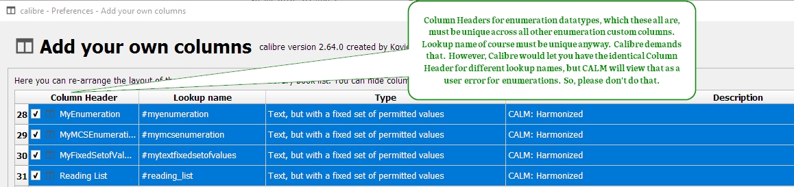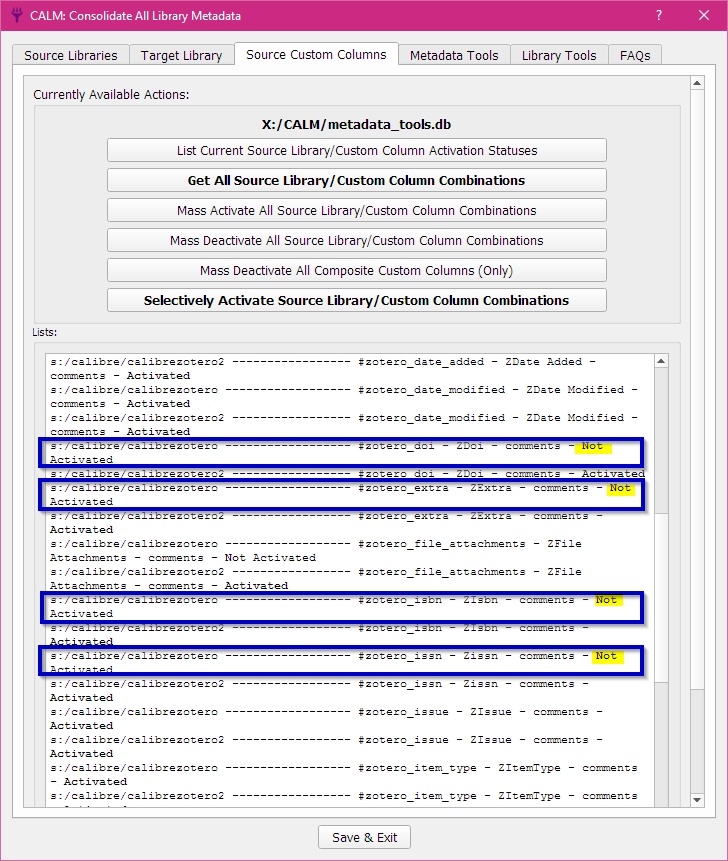 [1] Consolidate a snapshot of all of the standard and custom column metadata for all of your Calibre Libraries into a temporary CALM Target Library.