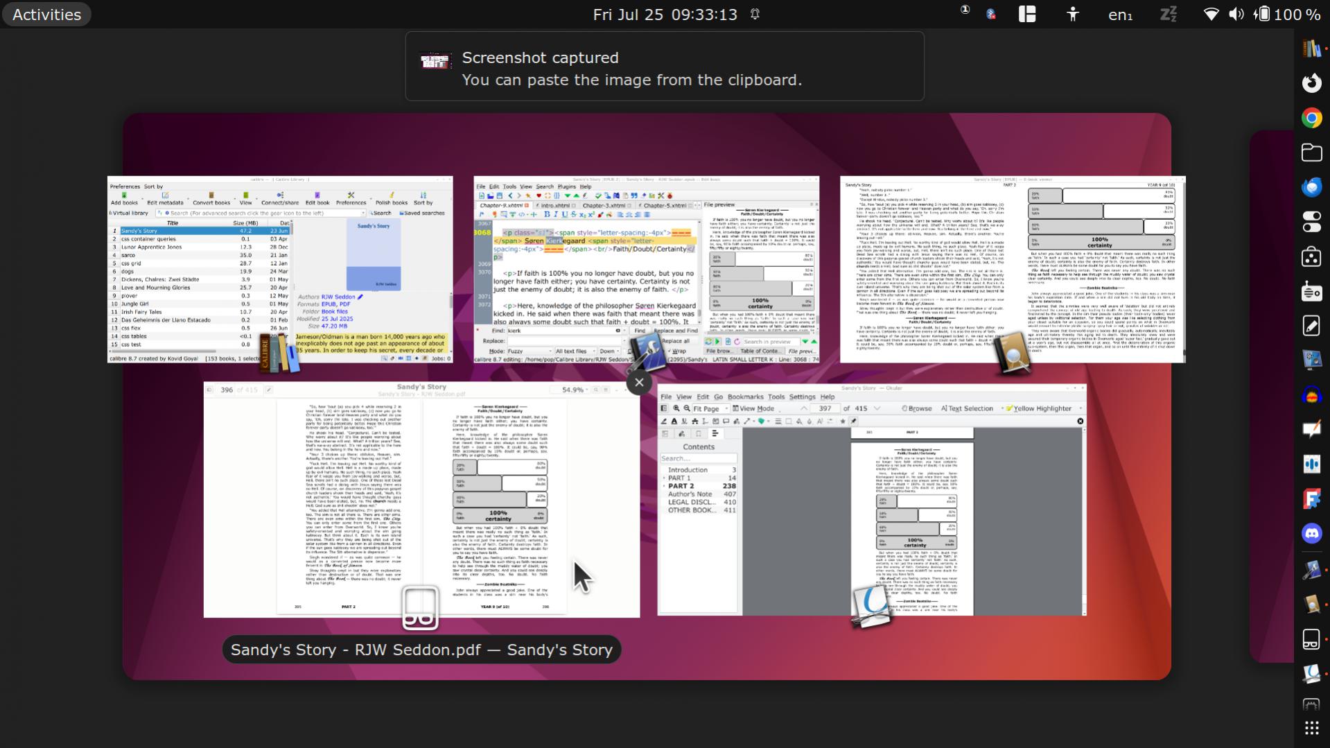 Here's a tip in case anyone might have need of this. The calibre main screen lets you open the epub editor with T, the epub viewer with V, but calibre does not have a built in pdf viewer. I have assigned ctrl-e to open pdf viewer evince and ctrl-o to open pdf viewer okular. There is no special reasons to have two different pdf readers but I occasionally try to detect if there are any differences. One thing I noticed is that if you use calibre's main screen to Polish book and add Soft hyphens those soft hyphens will make it hard to search a pdf.