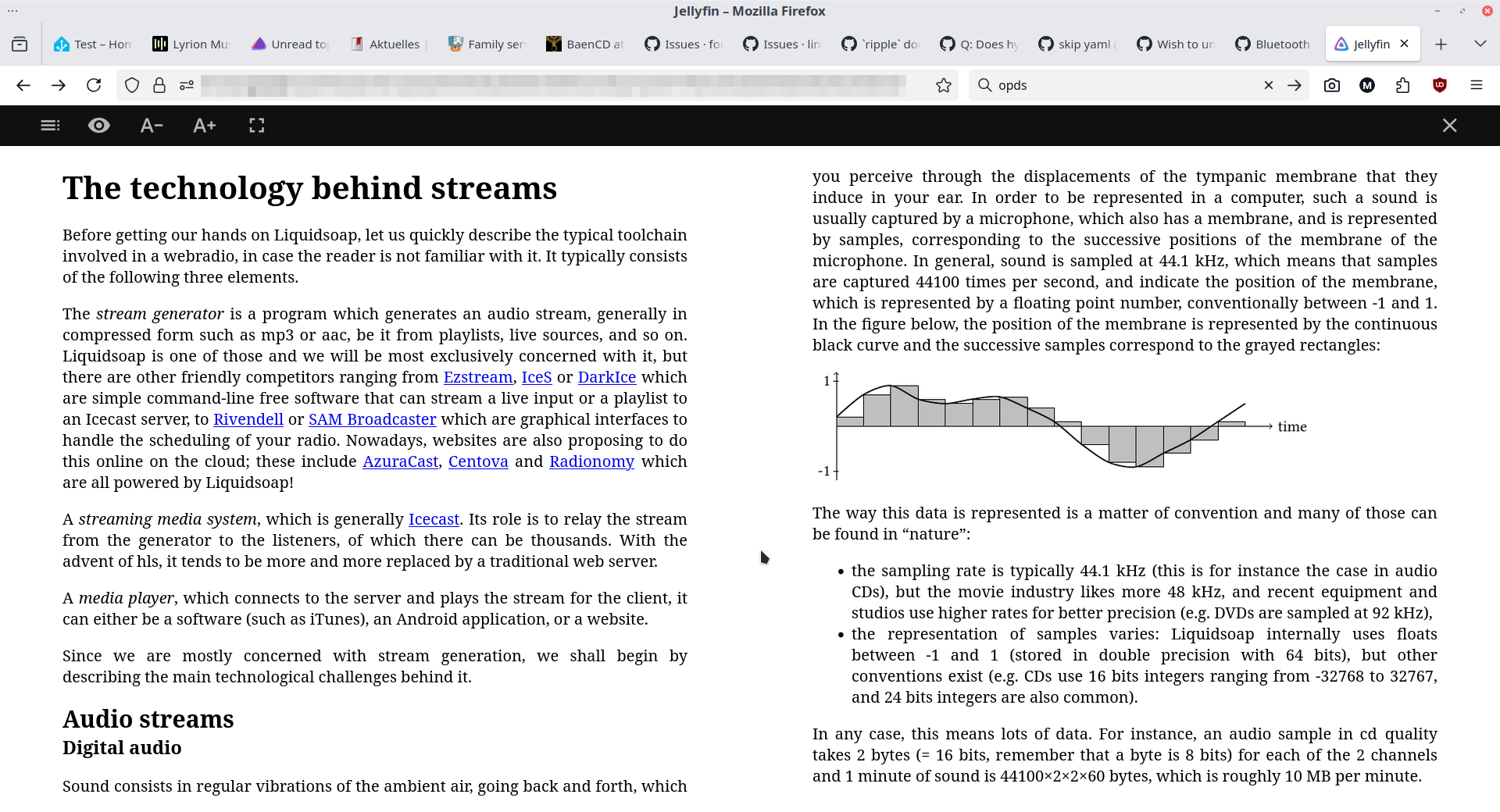 I mainly used Jellyfin because I had it already and was totally not sure if opening a Calibre server to the web would be safe enough in any way, and also because I’m lazy. It’s just so great being able to access all your movies, series, music and books through one and the same platform. Note the ebook features on Jellyfin, as compared to Calibre, are relatively rudimentary. (Enough for my family, though.) Screenshots show access via a browser, reading an EPUB book on the desktop and on a phone using the Jellyfin online reader. Last edited by Moonbase59; 08-11-2025 at 08:31 AM. |