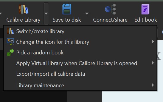 For curiosities sake I just fired up calibre versions 5, 6 and 7. Back then a left click on the Library icon popped the action menu. I don't know if the change in version 8 is by design or inadvertent. If the latter, IMO its a bug. I should confess, I don't ordinarily make use of the toolbar. BR Last edited by BetterRed; 08-24-2025 at 06:36 PM. |