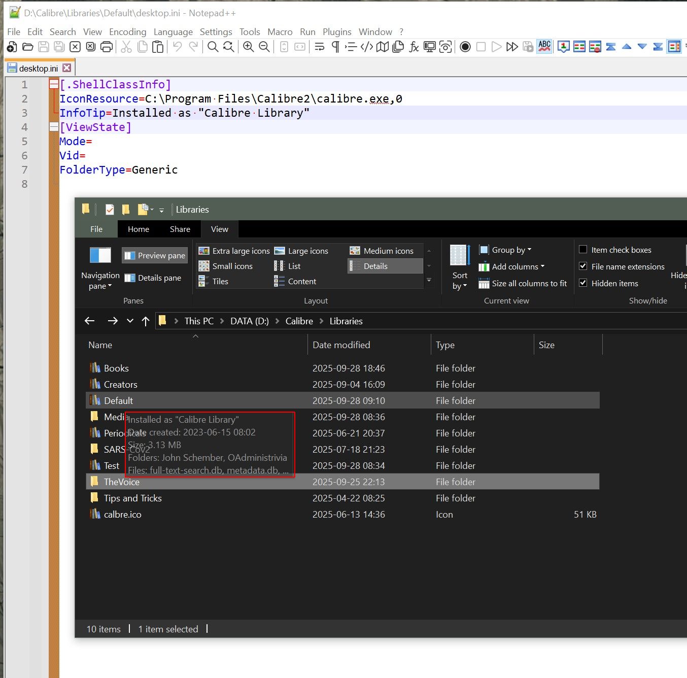 If that's so, you could add a desktop.ini file to all your library folders, and put a description into the Infotip element, when you hover on the library folder in File explorer you'll see your description, thus: You'll need to tell calibre's Check library function to ignore the desktop.ini, viz: Another thought (probably a better one for you): Use the Notebook feature of Comfy's Reminder plugin to store a list of library names and descriptions. BR |