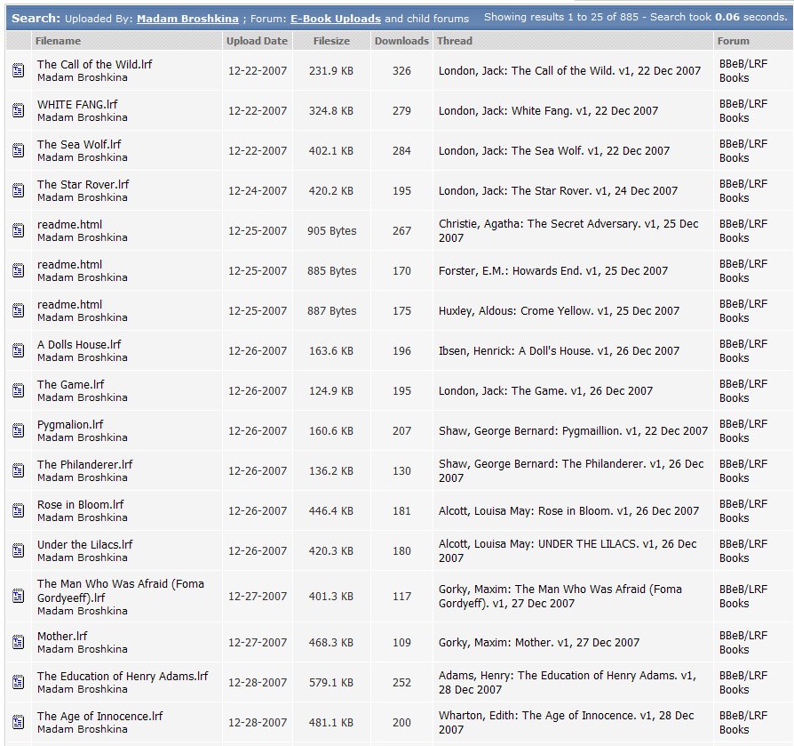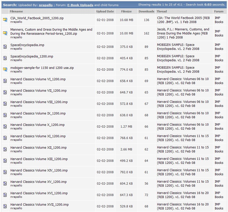 ![]() Well, ever wonder what these Top Uploaders uploaded in the early years of their ebook creation "careers"? Well wonder no longer as I present to you, the Top Uploaders' Early Ebook Uploads (Rank 01 to 18) in glorious picture form (and list form): Code: