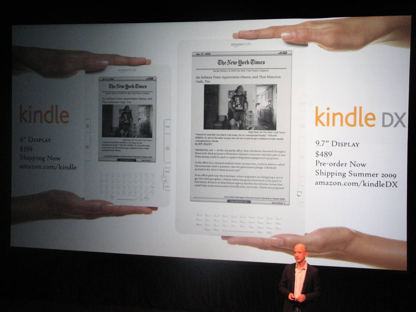 Hey, all! I thought it would be good to have a thread where we can post links to good pics and video of the Kindle.As I live in New York now and am currently under-employed, I was able to swing by the press conference this morning where Amazon unveiled the new Kindle DX. Here are some pics and video I took. I'll write up my personal impressions a little later. Video: Extended clip: Demo of the Kindle DX. Short clip: Note taking/highlighting in a non-pdf textbook. Short clip: Menu selection scrolling, screen response time. Short clip: Zoom mode for images in a newspaper. I apologize for the crummy camera work in the above. I'm not a very good cameraman, and this was my first try doing something like this. Okay, pics! Enjoy! Last edited by jharker; 05-06-2009 at 07:54 PM. |