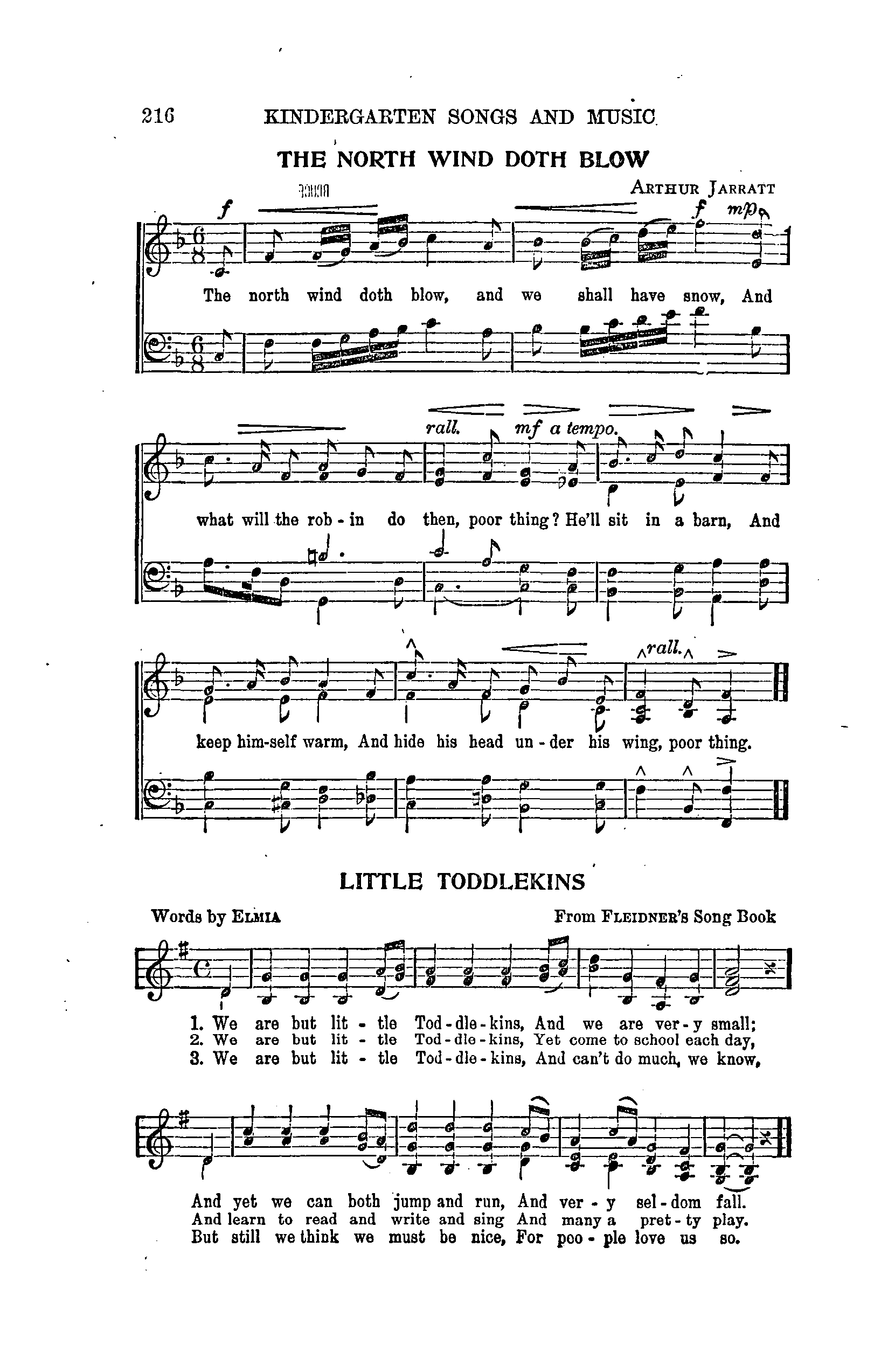 I'm working on converting a set of public-domain children's books (Berle's Self Culture, which AFAIK isn't available in any of the current PD collections) which include stories, poetry, songs and so on. I'm not sure what to do with the songs. I've attached a sample page.