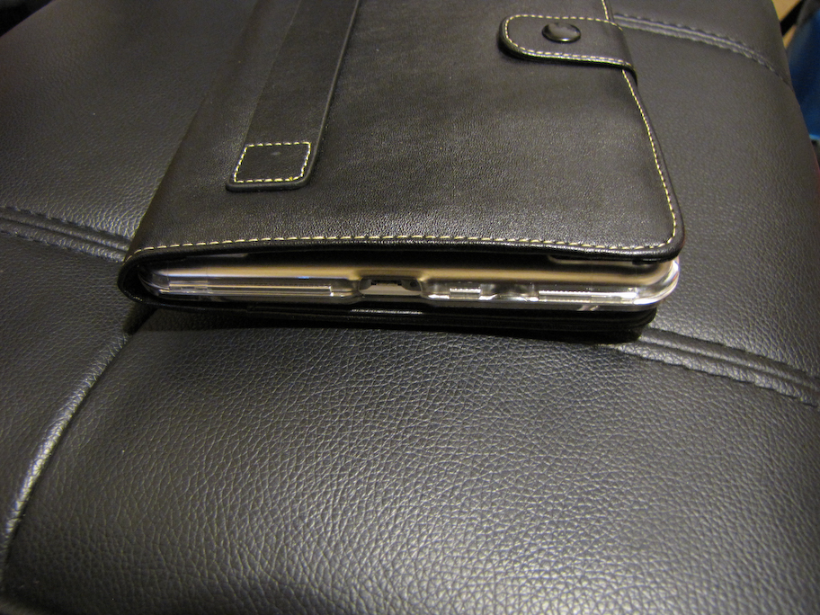 I had bought it as the same time I bought this: http://www.amazon.com/gp/product/B0025LP6OM and they arrived the same day, but I was really unhappy with the TrendyDigital case. The leather sleeve that held the kindle was misaligned, so the cutouts didn't match the Kindle as well as I would expect. So I went Frakenstein on it and cut out the leather sleeve, and what do you know, the outer leather 'shell' of the Trendy makes a perfect snap-wrap for the plastic case! It isn't a 'reading' case, you won't hold this like a book since it has no clips or straps inside anymore. This mod is more of a travel wrap for protection in a purse or bag (I had bought this Kindle for my mom to carry to work with her, so I know it is going to be safe now). Sorry for hijacking your thread Lis, just wanted to toss this idea out there and let you know what I thought about that plastic case you got, hope you don't mind! =) |