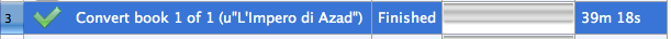 a regular odt file, with one image, h1 and h2 header for parts and chapters. At first, during conversion, I managed to get calibre detect parts and chapters, but the conversion process get stuck at this point. after a little correction fo the odt file, this is what I get during conversion: Convert book 1 of 1 (u"-----------------") InputFormatPlugin: ODT Input running on /Users/T/Documents/libreria calibre--------------- Extracting ODT file... Traceback (most recent call last): File "<string>", line 1, in <module> File "/Applications/calibre.app/Contents/console.app/Contents/Resources/lib/python2.6/site-packages.zip/calibre/utils/ipc/worker.py", line 90, in main File "calibre/gui2/convert/gui_conversion.pyo", line 17, in gui_convert File "calibre/ebooks/conversion/plumber.pyo", line 648, in run File "calibre/customize/conversion.pyo", line 217, in __call__ File "calibre/ebooks/odt/input.pyo", line 65, in convert File "calibre/ebooks/odt/input.pyo", line 36, in __call__ File "odf/odf2xhtml.pyo", line 1291, in odf2xhtml File "odf/odf2xhtml.pyo", line 1299, in xhtml File "odf/odf2xhtml.pyo", line 1284, in parseodf File "xml/sax/expatreader.pyo", line 107, in parse File "xml/sax/xmlreader.pyo", line 123, in parse File "xml/sax/expatreader.pyo", line 207, in feed File "xml/sax/expatreader.pyo", line 338, in start_element_ns File "odf/odf2xhtml.pyo", line 486, in startElementNS File "odf/odf2xhtml.pyo", line 476, in handle_starttag File "odf/odf2xhtml.pyo", line 999, in s_text_h File "odf/odf2xhtml.pyo", line 521, in classname File "xml/sax/xmlreader.pyo", line 316, in __getitem__ KeyError: (u'urn asis:names:tc pendocument:xmlns:text:1.0' , 'style-name')