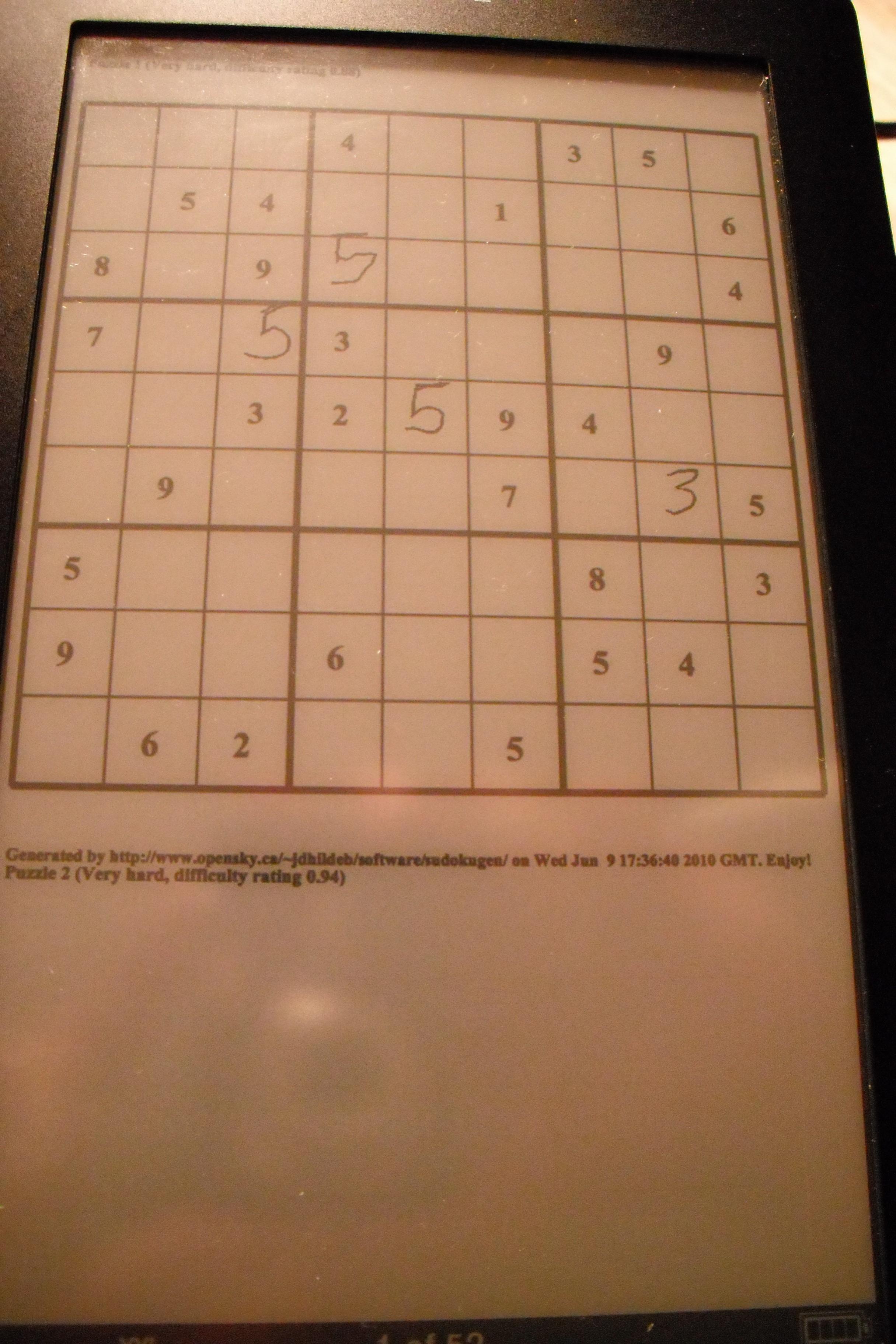 For those wondering what it looks like on the PRS-600, here's the first of the 48 easy puzzles finished, on my device.